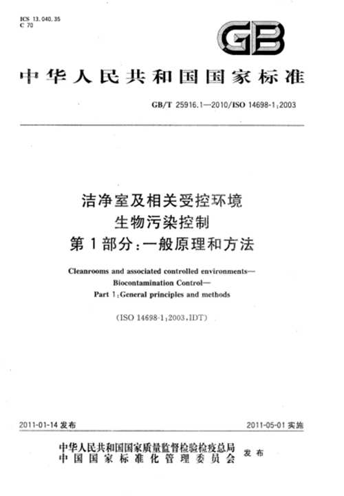 目前,我國(guó)國(guó)內(nèi)現(xiàn)行的有關(guān)潔凈室生物污染監(jiān)測(cè)的原則和基本方法的唯一標(biāo)準(zhǔn)是GB/T 25916-1:2010(ISO 14698-1:2003)
