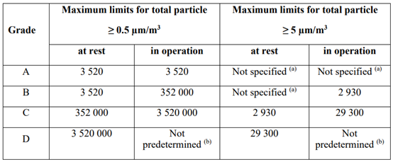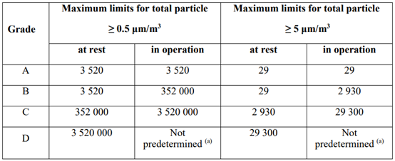 表:EU GMP 2022版潔凈室分級要求