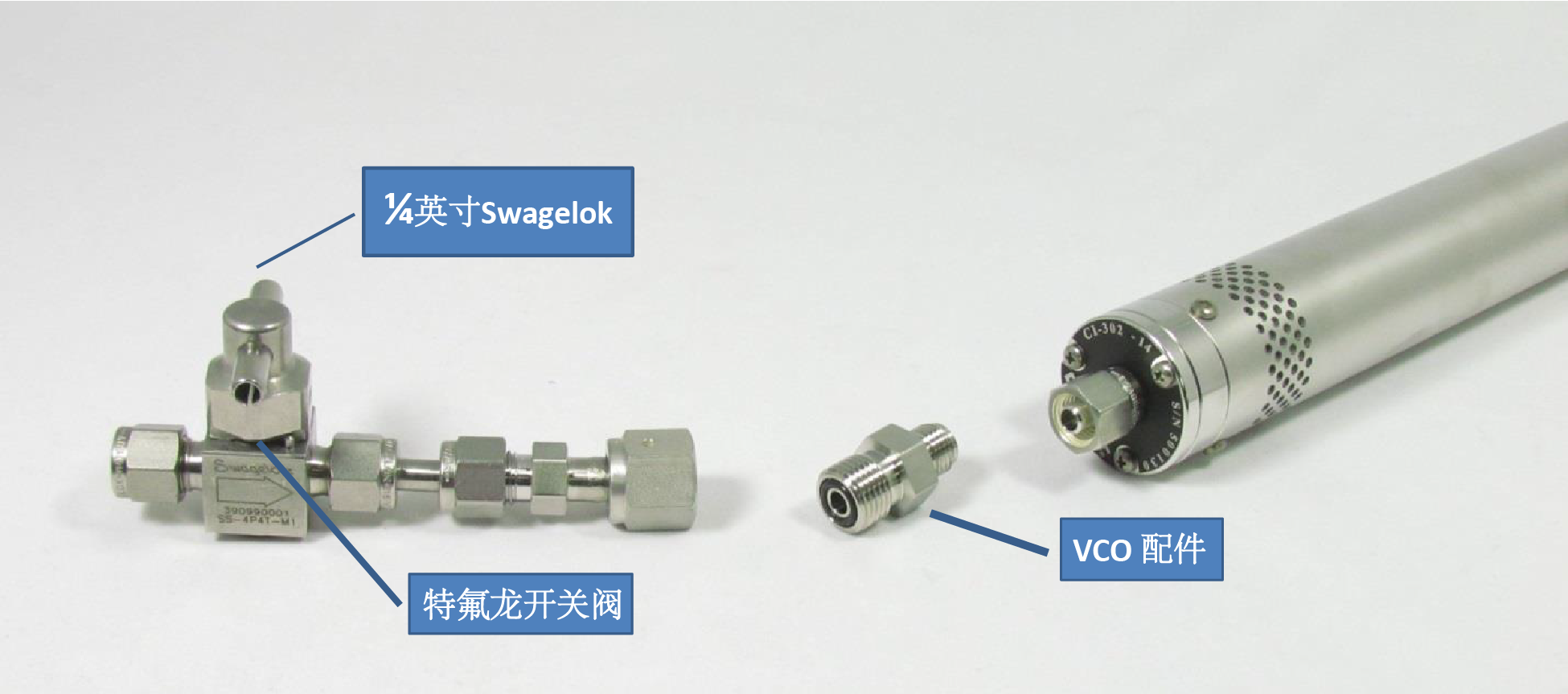 CI-302 的低壓端有一個(gè)錐形接頭,可將 Bev-A Line 管道安裝在其上。